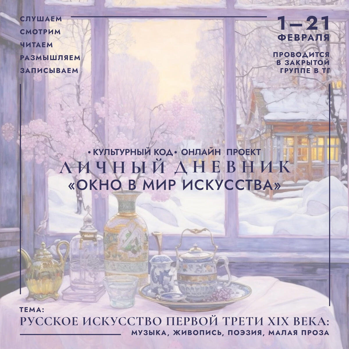 В течение 21 дня мы будем знакомиться с произведениями русского искусства первой трети ХIХ века, формируя культурный бэкграунд в музыке, поэзии, живописи и малой прозе.